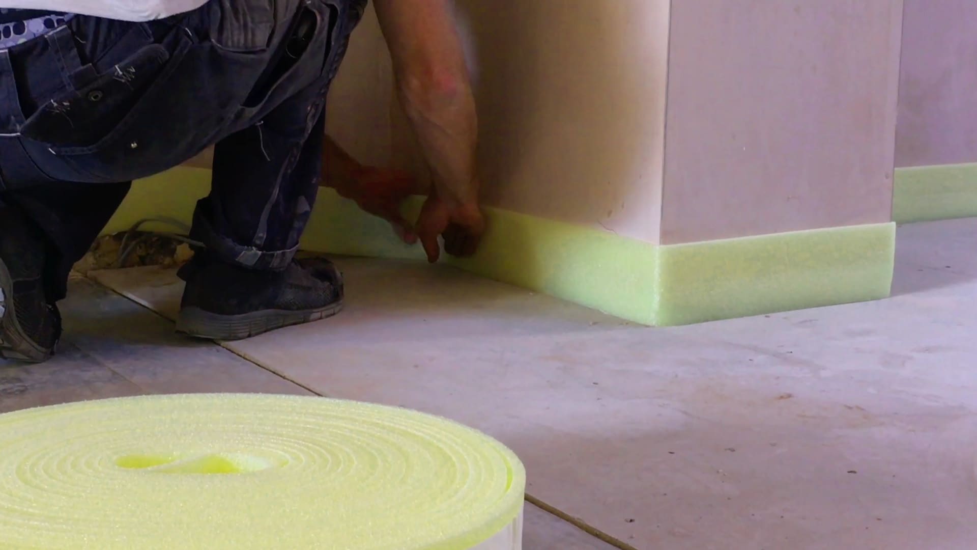 using a self-levelling compound, you will need to fit perimeter strip and complete this step.